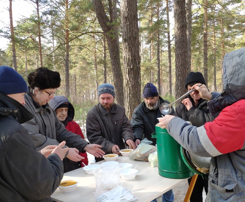 Каждую неделю, во вторник и пятницу с 13.00 – 14.00 в районе гаражного кооператива «Заречный» (за мостом в 100 м с левой стороны по дороге на Северное кладбище) для бездомных работает выездной пункт раздачи горячего питания и теплой одежды нуждающимся.