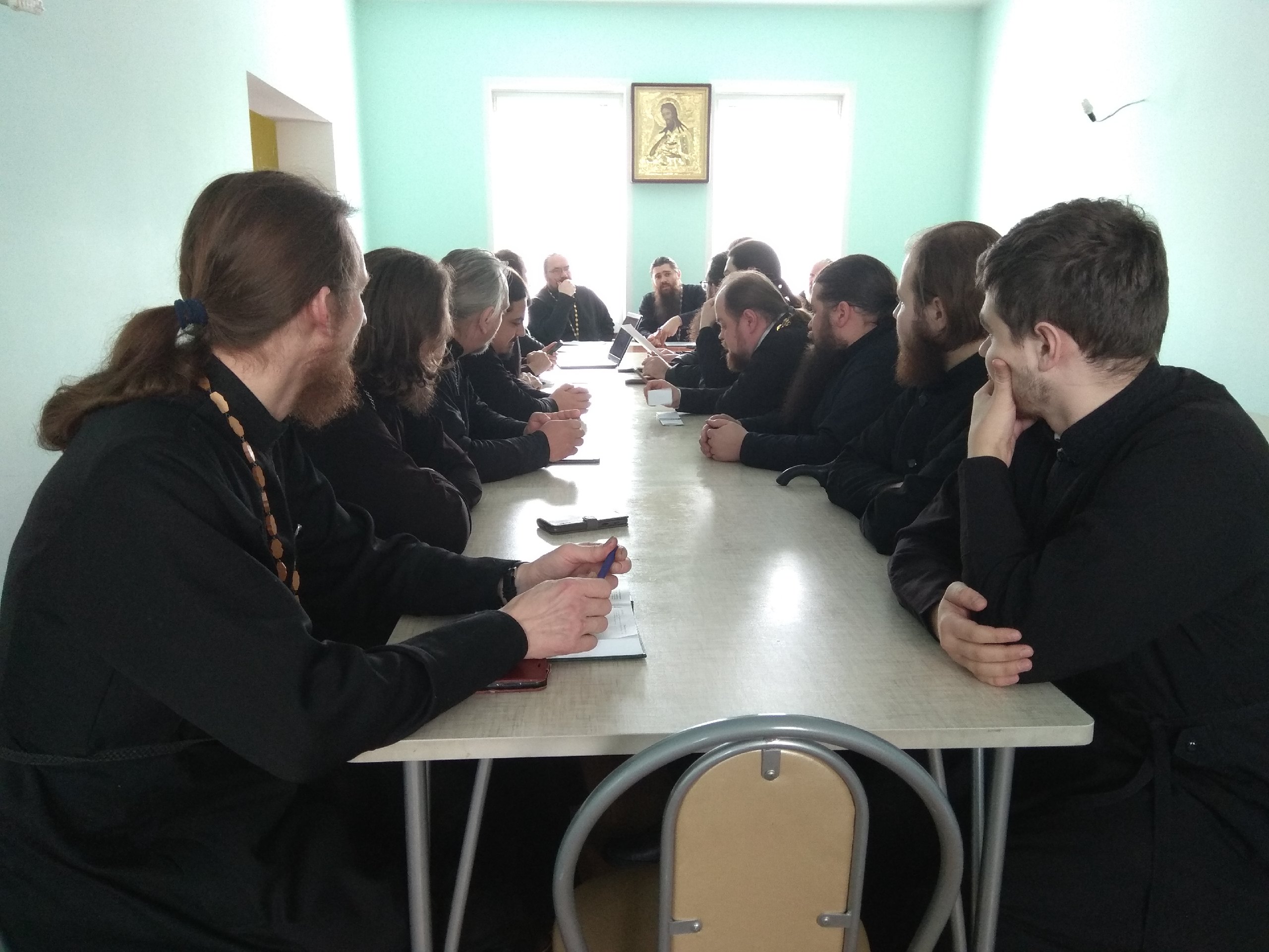 Главным вопросом на повестке дня стало обсуждение проекта документа «О благословлении православных христиан на исполнение воинского долга». Данный документ создан комиссией Межсоборного присутствия по вопросам богословия и богословского образования во исполнение поручения президиума Межсоборного присутствия от 17 июля 2017 года и в настоящее время направлен в епархии РПЦ для обсуждения и получения отзывов и предложений. Один из тезисов, озвученных в документе, говорит о необходимости исключения из «пастырской практики чинопоследования для «освящения» любых разновидностей оружия, употребление которого может повлечь за собой гибель неопределенного количества людей, в том числе оружия неизбирательного действия и оружия массового поражения». Духовенство благочиния ознакомилось с документом и внесло свои предложения.